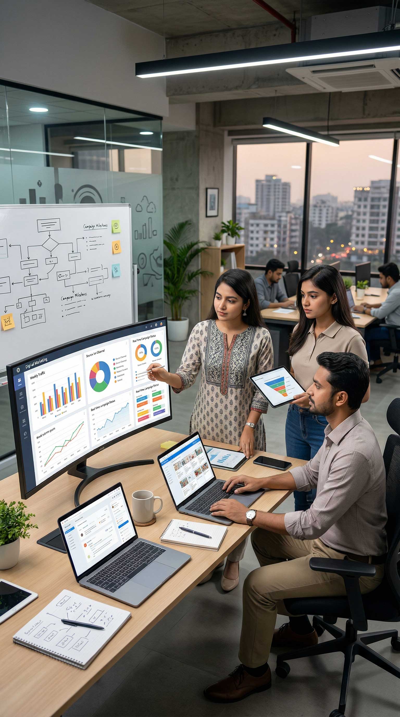 Our approach starts with understanding your business goals, target audience, competitive landscape, and industry dynamics. Based on this, we develop customized strategies across search engines, paid advertising platforms, social media channels, and content ecosystems. Every campaign is backed by data, continuously monitored, and optimized to improve performance over time.